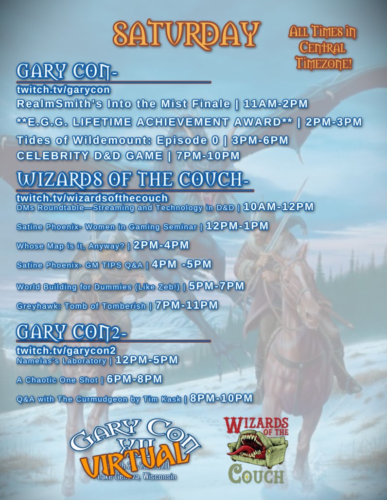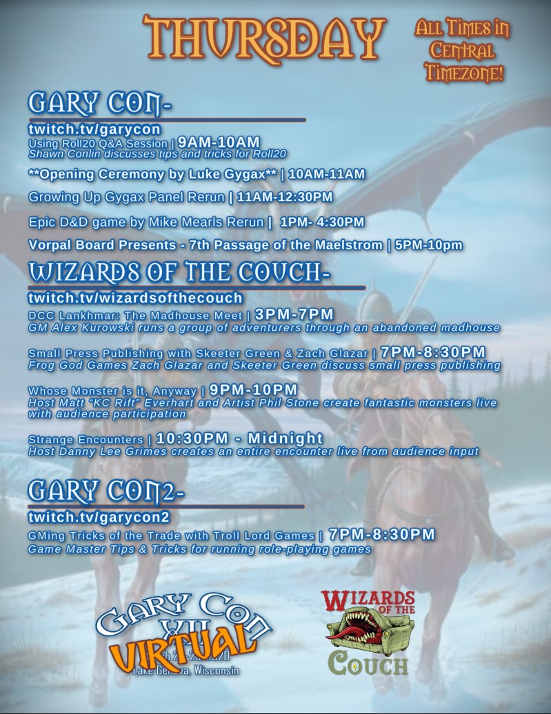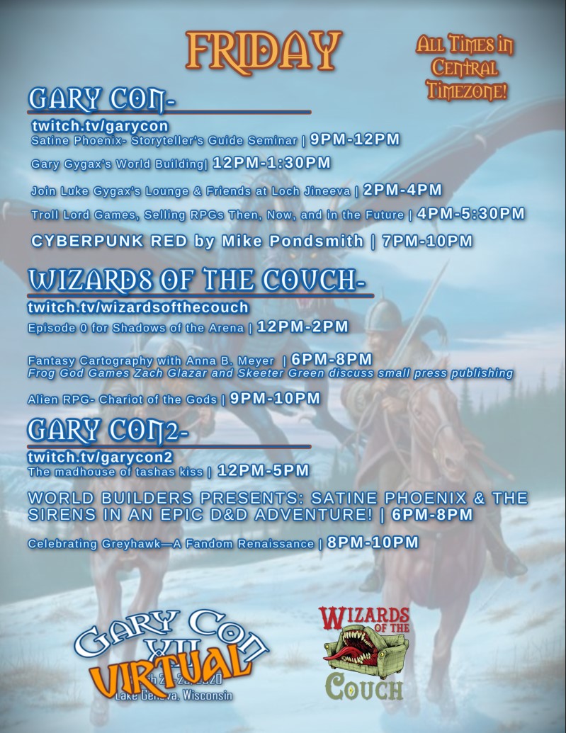 So, as an in-person event is not possible this year, we still want to celebrate with you and are excited to offer VTT games over Gary Con XII weekend!
